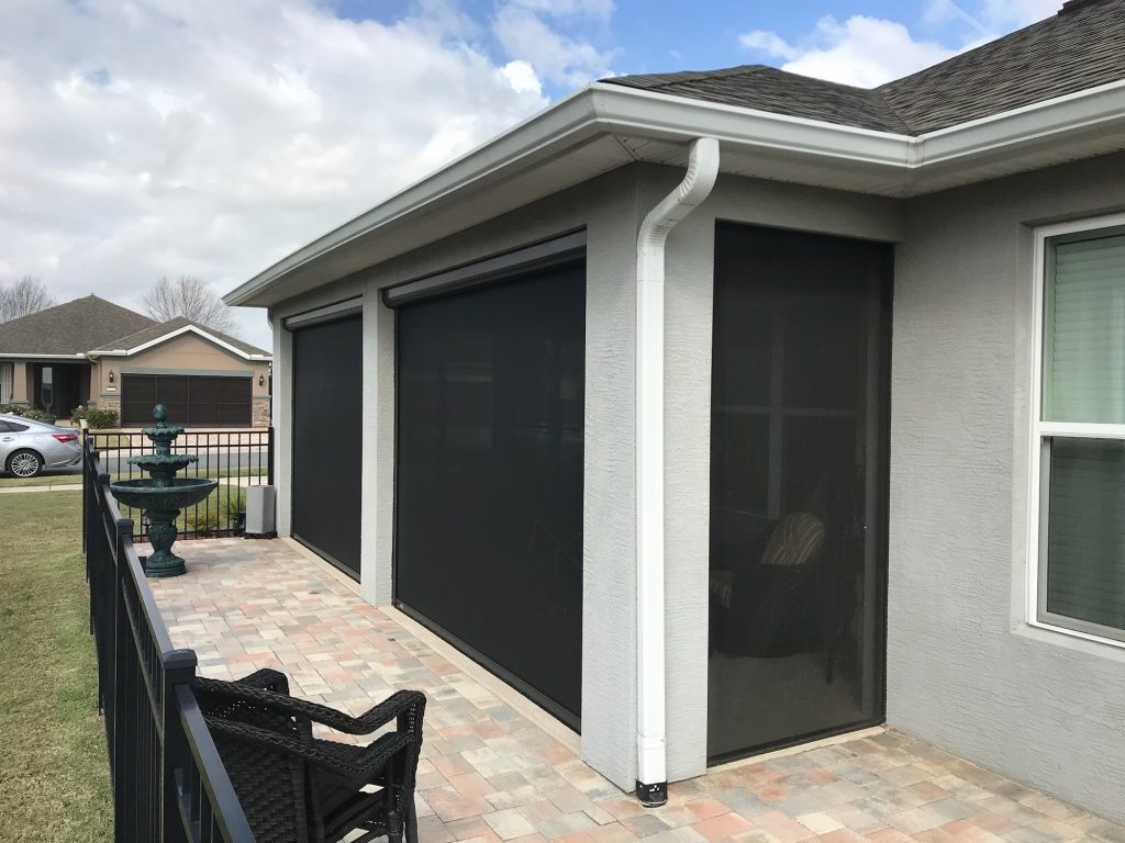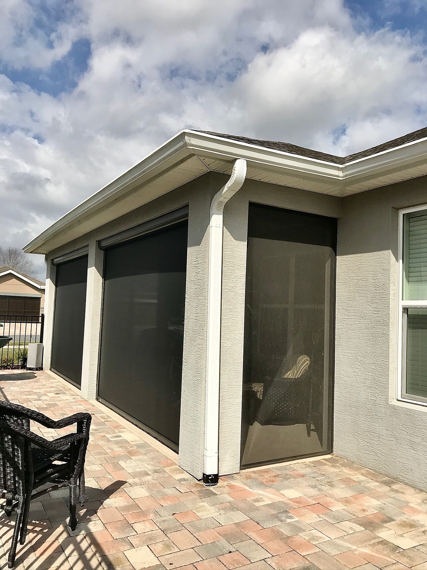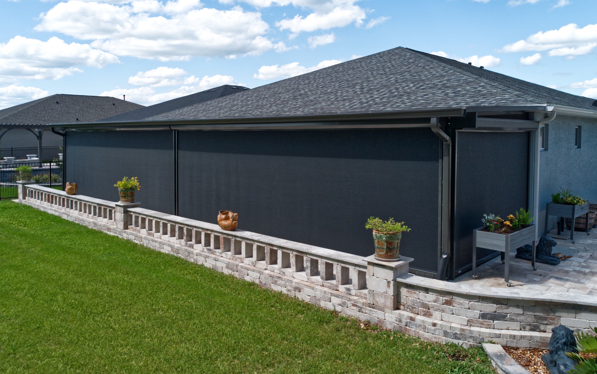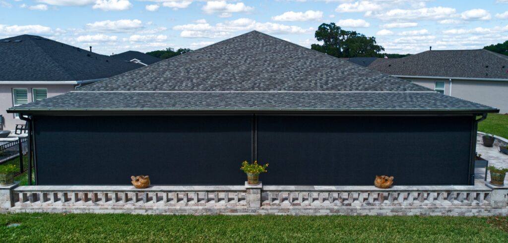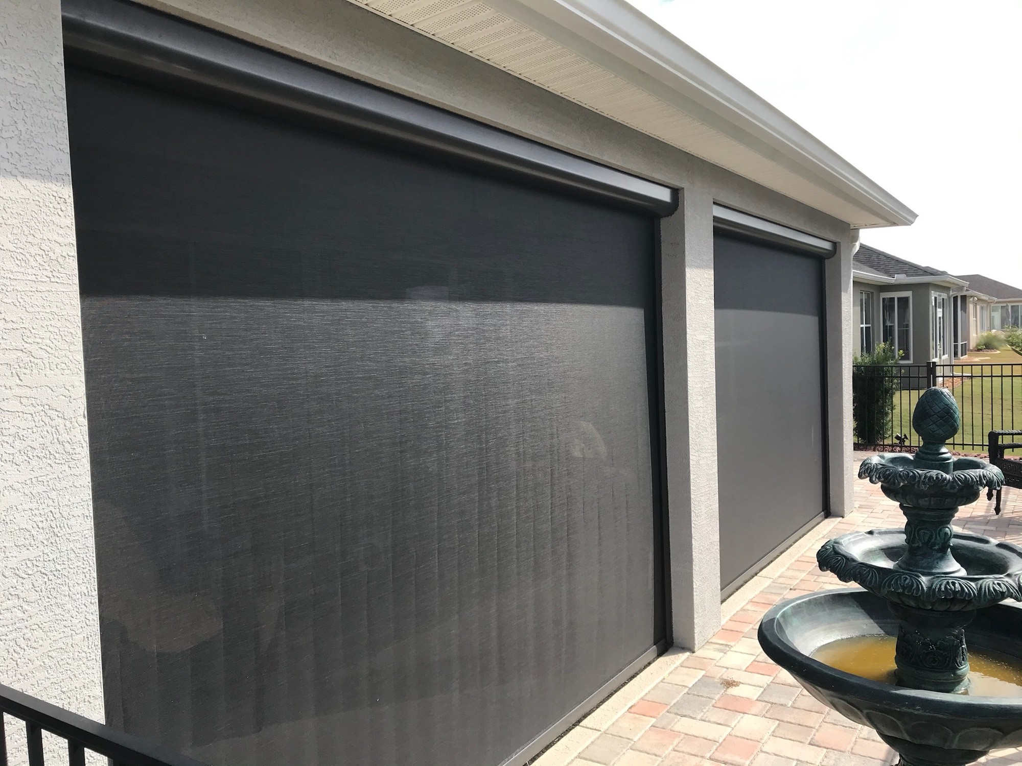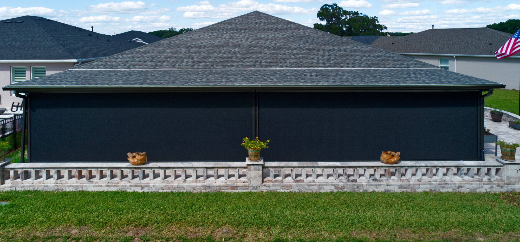Motorized screens offer premium control and modern luxury. With the push of a button, these retractable screens drop down to cover open patios, garages, or lanais — and retract when not needed.
